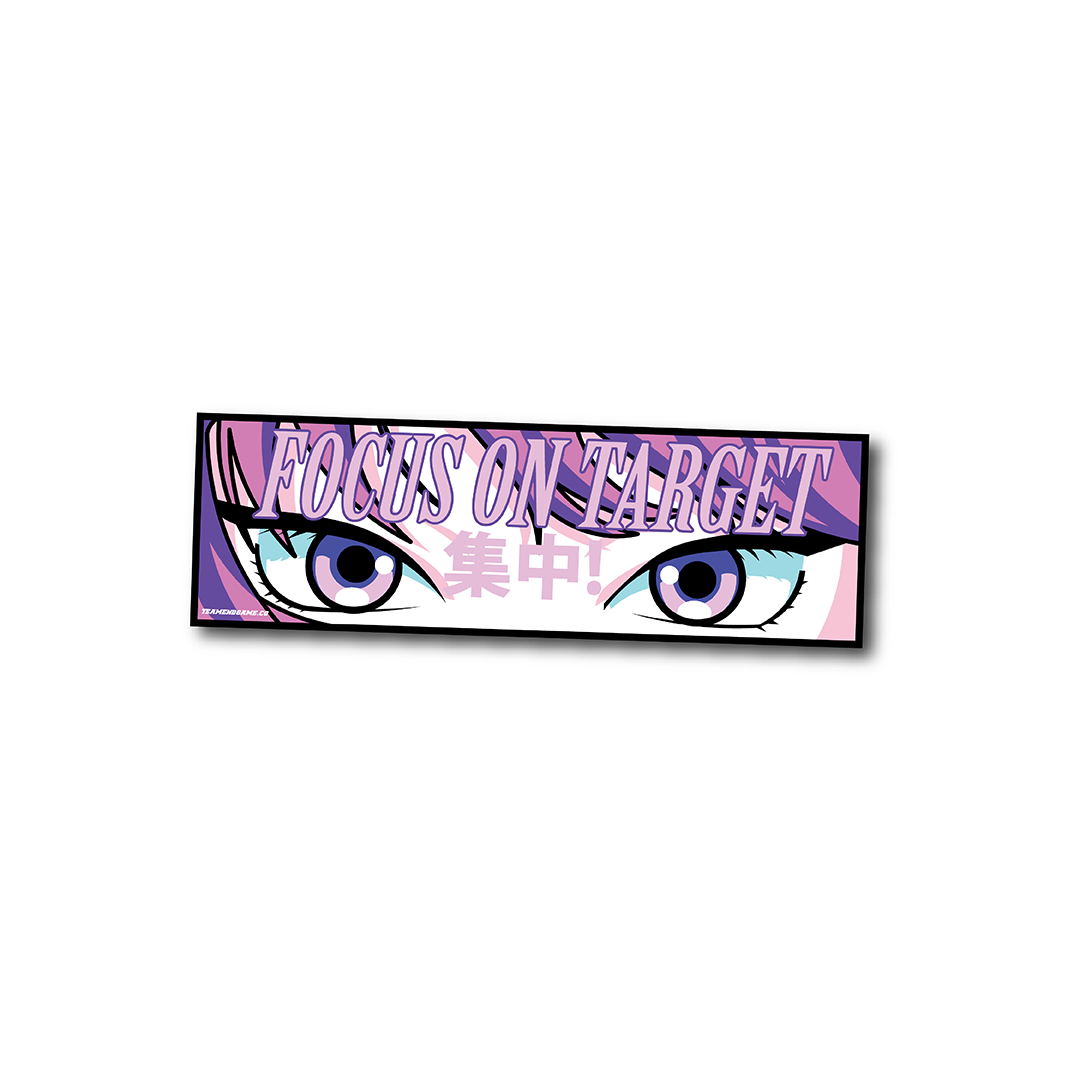 This bold anime-inspired slap features piercing eyes and sharp typography layered over clean graphic lines. Designed to represent tunnel vision and relentless focus, it’s made for builds and creators who move with intention.