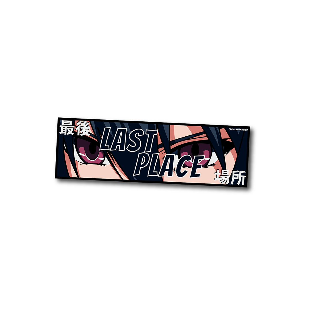 This bold anime slap features sharp eyes and strong typography layered over deep blue tones. A reminder that last place isn’t failure — it’s the starting point before the climb.